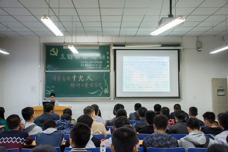 为引导我校广大青年学生学思践悟习近平总书记青年时期的成长故事,以昂扬向上、积极进取的精神状态迎接党的十九大胜利召开,坚定青年学生紧跟党走的理想信念。近日,自动化学院团委组织16、17级团支部开展了“青春喜迎十九大,榜样力量催奋进”主题团日活动,各支部通过观看“青年榜样习近平”,用真实的历史细节讲述了习近平总书记1969年1月至1975年10月在陕北黄土高原的历练故事,再现了总书记七年知青岁月的艰苦生活和成长历程。
