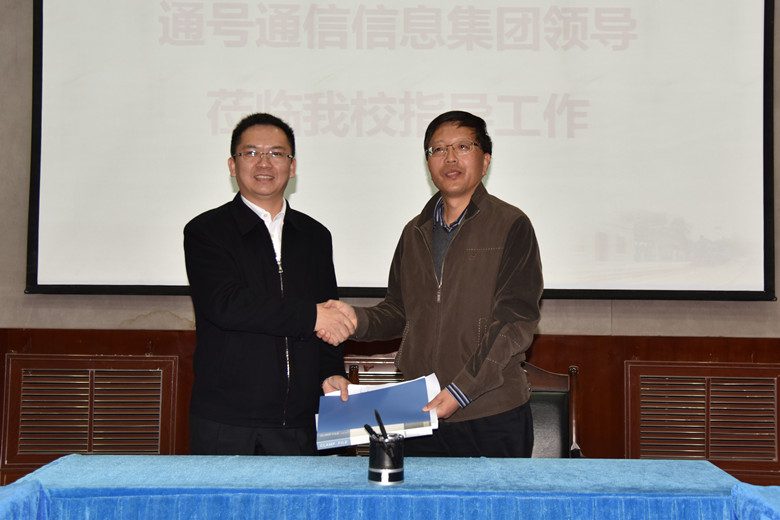 杨子江校长对通信信息集团一行表示热烈欢迎,表达了对于双方共同探索“校企合作、产学共赢”发展道路的良好愿景,并介绍了学校近期重点项目开展的情况,希望双方通过搭建校企合作桥梁,加强科研项目合作和成果转化,建立联合培养基地,实现校企双赢。刘振奎副校长对兰州交通大学的历史沿革、学校概况、人才培养、课题研究和对外交流情况作了简要介绍。蔡宏宇董事长介绍了通信集团的发展历程以及在中国铁路建设和运营中取得的突出成绩,并希望今后双方充分利用通信信息集团在铁路四电、地铁工程、市政工程、机场、港口等领域等项目板块的工程优势及生产条件,发挥兰州交通大学在通信、计算机、电子信息工程等学科的专业优势、人才储备及科研实力,在北斗卫星定位应用、无线网络频谱监测、视频图像分析、工程实施信息化管理等领域广泛开展合作,探索成立联合实验室,全面构建产学研战略联盟创新体系。