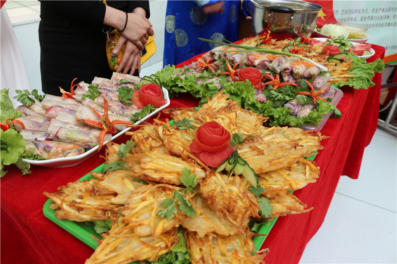 在本届国际学生文化节饮食展上,来自37个国家的300余名国际学生身着各自民族特色服装,向来宾展示精心制作的各自国家特色美食、传统工艺品、地理风情和国家风貌。来宾们既能品尝到素有“西餐之母”的意大利餐、极具特色的乌兹别克斯坦抓饭、土库曼斯坦的薄饼、印度飞饼、制作精美的东南亚小吃、美国特色沙拉,还能喝到浓郁飘香的蒙古奶茶。同时,还能听到留学生们眉飞色舞地讲述各国的不同风情。