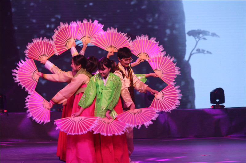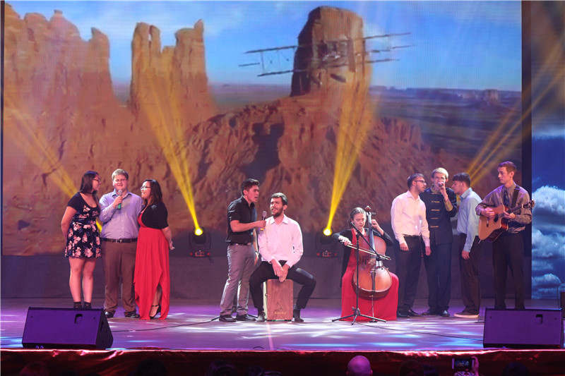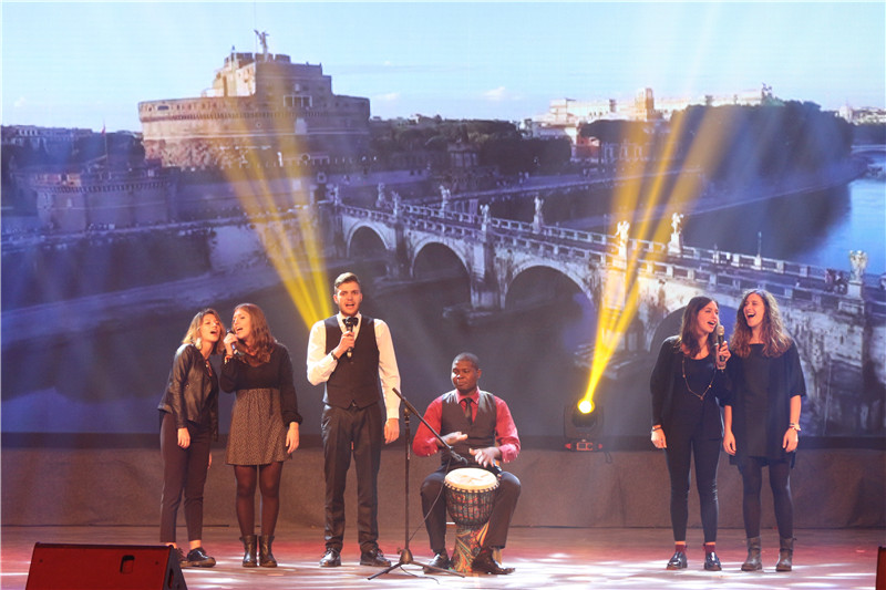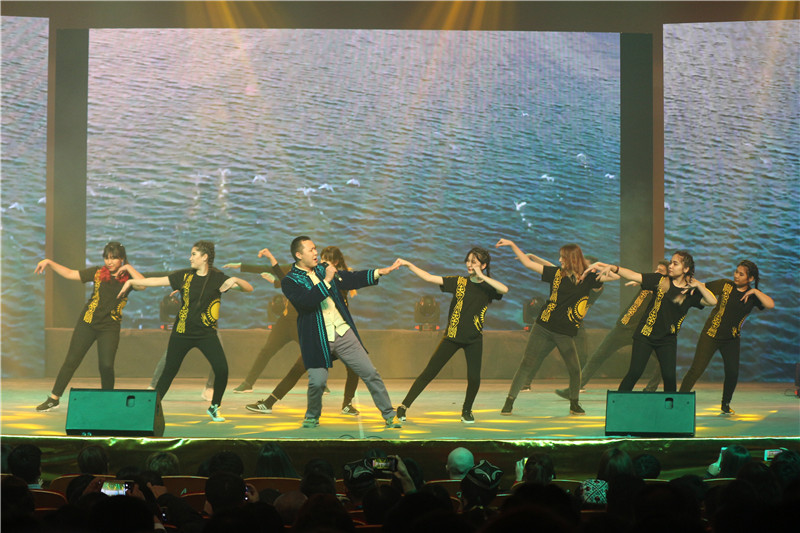 夜幕来临后,兰州交通大学大礼堂精彩的文艺晚会则带领观众的心绪开启一场视觉与听觉盛宴。文艺晚会的演出节目跨越国界、穿越时空、冲破语言差异、融合文化异同,既有美国、意大利等国学生带来的中外歌曲串烧,也有韩国学生柔情演绎的扇子舞;既有老挝学生表达爱国之情的民族舞蹈,也有泰国等国学生深情演唱的流行歌曲《成都》与《see you again》;既有来自非洲大陆的风情舞蹈,也有哈萨克斯坦学生演绎的歌伴舞《我是哈萨克》;既有土库曼斯坦学生劲炫的街舞表演,又有也门学生浓浓的阿拉伯风情舞蹈。文艺晚会演出精彩纷呈,文化氛围引人入胜。