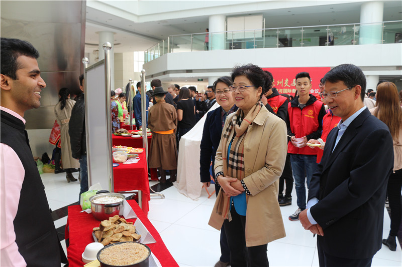 文化节期间,我校党委书记王萍,校长杨子江,党委副书记买寿清,常务副校长李引珍,副校长陈兴冲、马军党等参观国际学生文化节饮食展,并观看文艺晚会。兰州文理学院作为特邀嘉宾出席文化节并参与文艺演出。