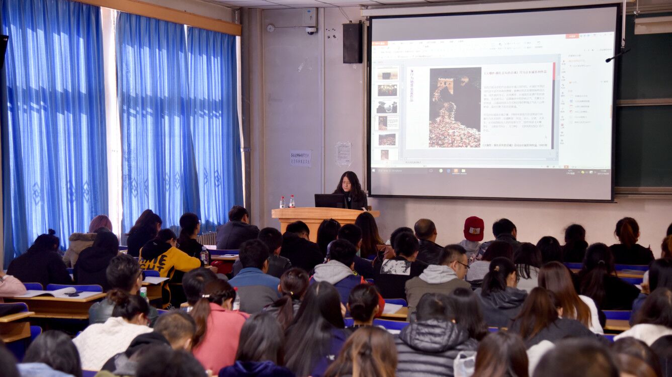 报告中,郑连杰先生通过影像作品,介绍了自己在中国华山和纽约创作的行为艺术作品。谈了对中国当代水墨绘画作品和行为艺术作品的理解。在随后的互动环节,郑连杰先生用风趣幽默的语言、独到的见解回答了师生提出的问题。