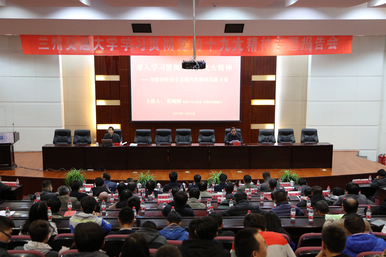 11月23日下午,学校在国际会展中心三楼报告厅召开十九大精神宣讲报告会,十九大代表、中科院院士、教育部“十九大精神百人宣讲团”成员、西南交通大学首席教授、我校双聘院士翟婉明教授为我校师生作了题为《深入学习贯彻党的十九大精神——为建设社会主义现代化强国贡献力量》的专题宣讲报告。