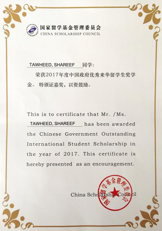 按照教育部《关于推荐“优秀来华留学生奖学金”人选的通知》要求,国际教育学院组织留学生积极申报,校内严格评定遴选,报请教育部细致筛选和严格评审,最终我校苏丹籍博士留学生TAWHEED SHAREEF(马芙蓉)凭借其优异的学业成绩,突出的科研能力,优秀个人品质以及知华、友华、爱华的中国情结,喜获教育部“2017年度中国政府优秀来华留学生奖学金”。