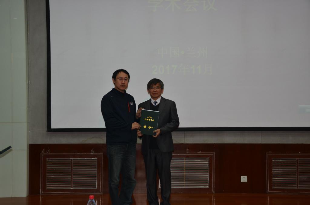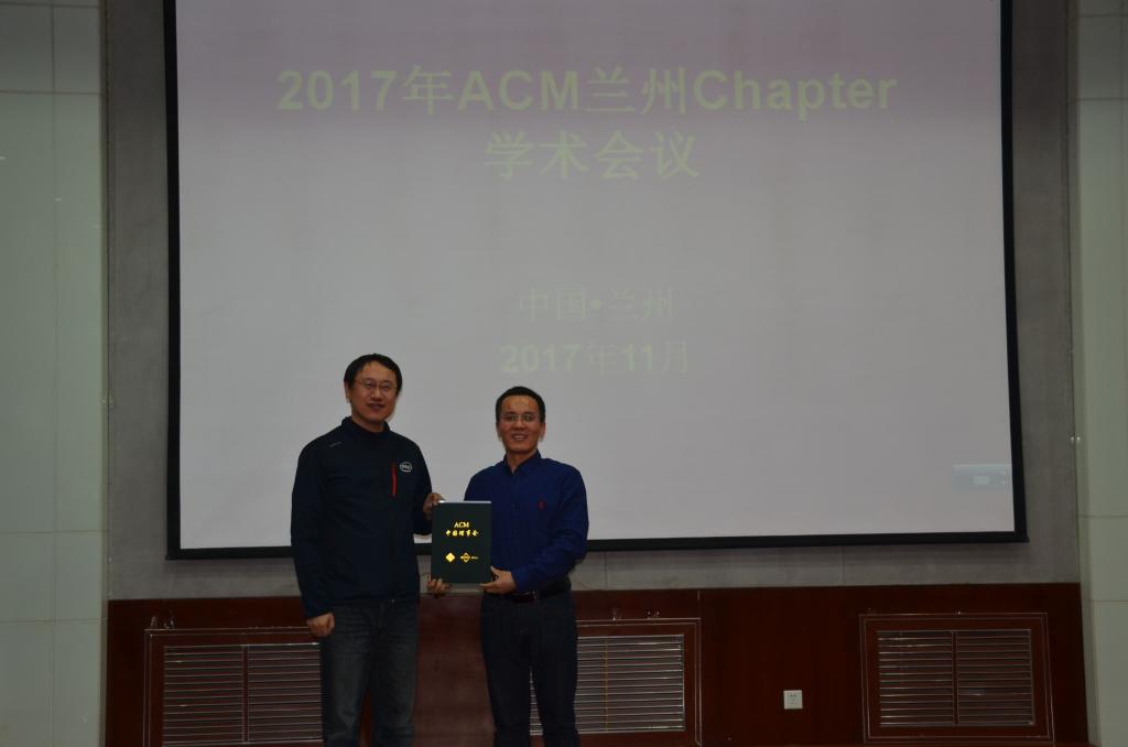 仪式上我校伍忠东教授被推选为ACM兰州Chapter主席,兰州大学马志新教授、西北师范大学党小超教授被推选为副主席,我校电信学院张学军博士被推选为秘书长。ACM中国理事会主席、清华大学陈文光教授为主席团成员颁发了聘书。