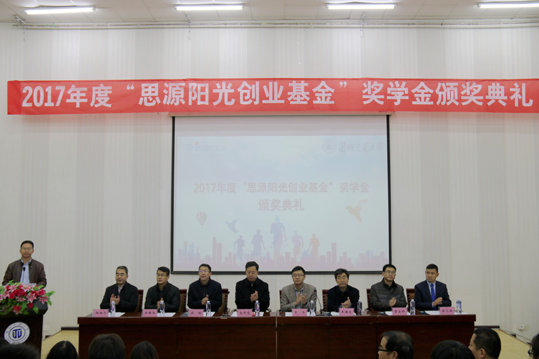 副校长马军党为颁奖典礼致辞,他代表学校向所有的获奖学生表示祝贺,感谢天合光能有限公司、“思源阳光创业基金”对兰州交通大学大学长期以来的关心与支持。他指出,兰州交通大学始终坚持把人才培养作为学校的根本任务,将人才培养质量视作学校最为宝贵的生命线。今天获奖的同学是学院品学兼优的代表,他们的成长、成才将对国家和甘肃省新能源产业发展起到积极的促进作用。希望同学们秉承“尚德、励志、博学、笃行”的校训精神,刻苦学习,努力奋斗,勇于承担起青年责任,在自我发展的同时,以社会发展为己任,在人生的道路上谱写美丽的篇章。