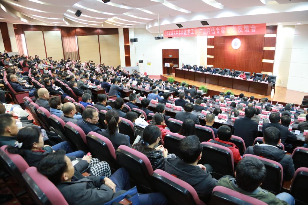 12月7日下午,我校本科教学工作审核评估专家意见反馈会在国际会议中心3楼大型报告厅举行。审核评估专家组全体成员,省高校工委副书记、党组成员贾宁,省教育厅高教处处长张晓东,学校党政领导班子成员,各职能部门主要负责同志,教学督导,各学院领导班子成员,学科专业负责人,教务、学生管理人员及骨干教师代表350余人参加了意见反馈会。反馈会由专家组组长、大连交通大学副校长关天民教授主持。