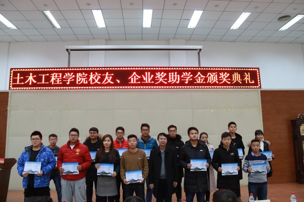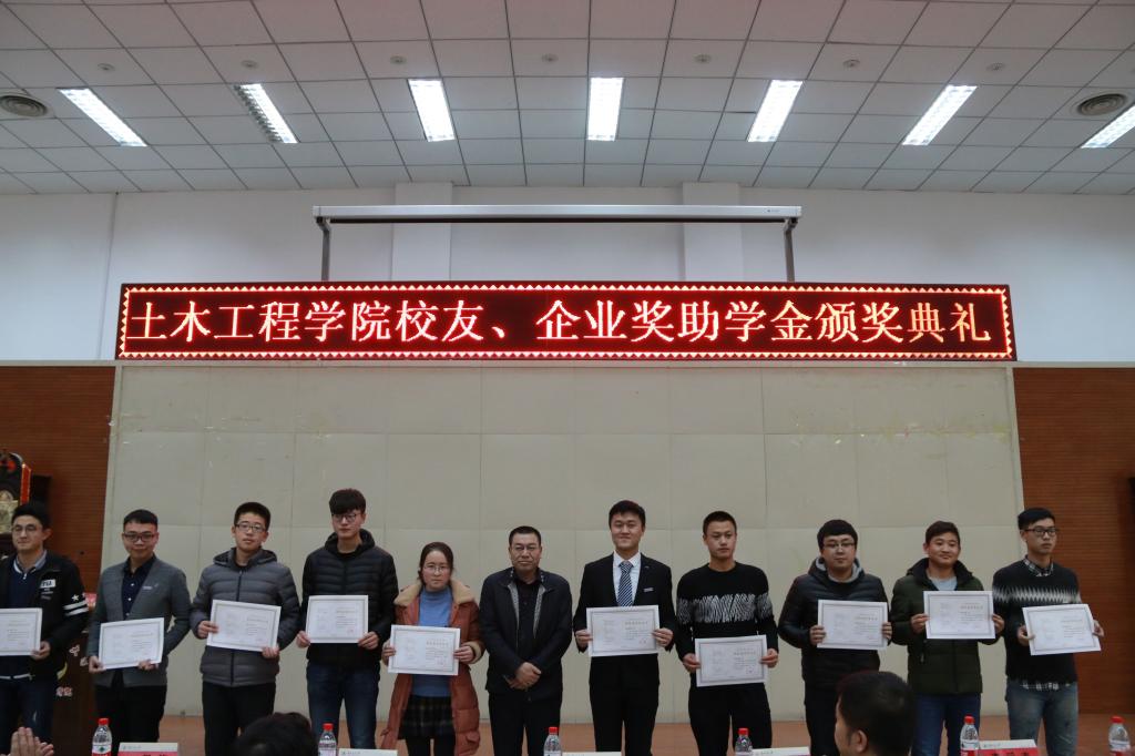 “苏交科奖学金”每次评选研究生、本科生各2名、研究生每人奖励6000元,本科生每人奖励4000元;“甘肃路桥奖学金”每次评选30名,每人奖励1500元;“工78校友轨枕奖学金”每次评选10名,每人奖励3000元;“工79校友助学金”每次评选10名学生,每人3000元;“工88校友助学金”每次评选4名,每人资助1000元;“建97校友助学金”每次评选4名,每人资助1000元;“建93校友助学金”每次评选2名,每人资助1000元;“工93校友助学金”每次评选6名,每人资助1000元;“造专92校友助学金”每次评选3名,每人资助2000元,共计发放奖助学金14.7万元。