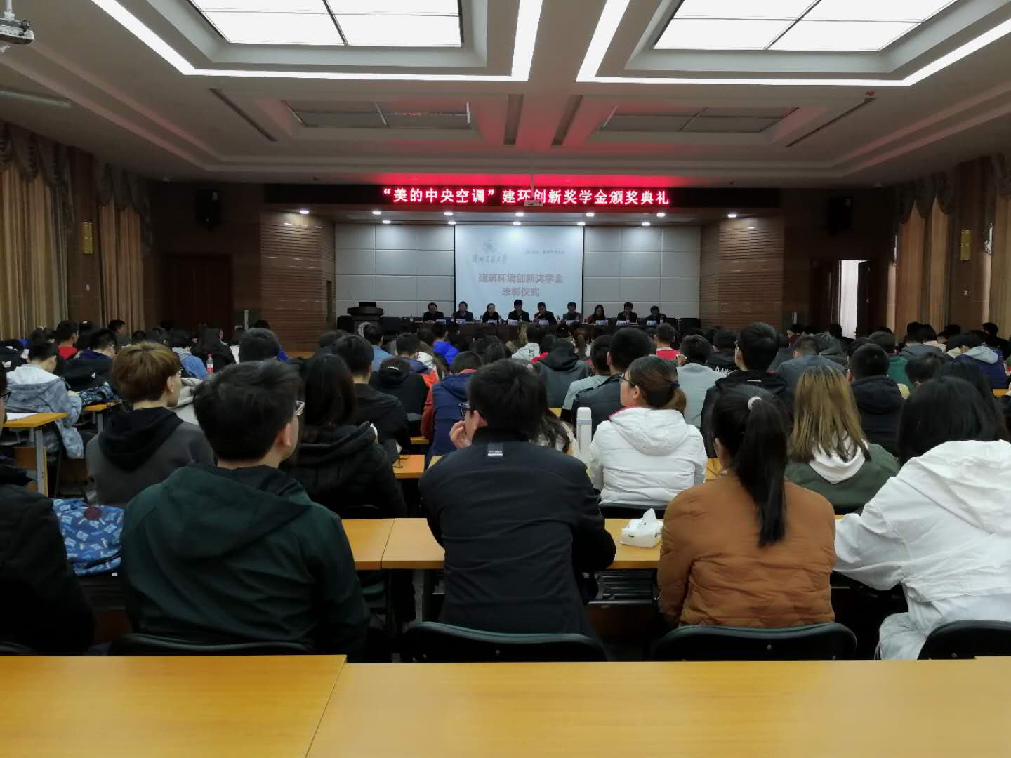 3月6日下午,环境与市政工程学院在二教报告厅举行“美的”中央空调建筑环境创新奖学金颁奖典礼。甘肃美的暖通设备销售有限公司总经理李兴旺、市场部谢彦玲以及我校学生处、创新创业学院、环境学院相关负责人等出席并为获奖同学颁奖。