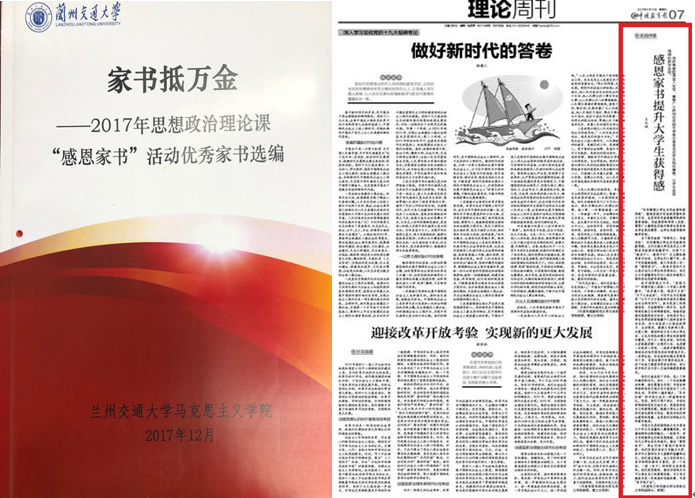 2017年,我校马克思主义学院在“思想政治理论课教学质量年”建设工作中开展的“感恩家书”实践教学活动受到学生普遍欢迎。3月10日,《中国教育报》理论周刊以《感恩家书提升大学生获得感》为题对本次活动做了报道。