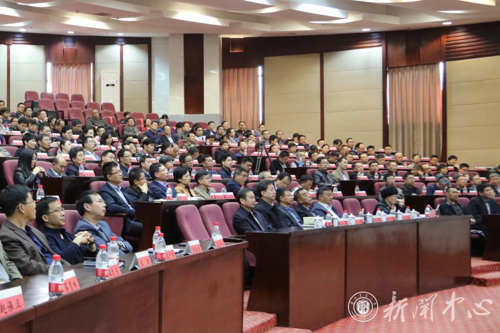 省委组织部干部三处处长郭旭隽,省委宣传部相关同志,学校全体在校校领导,全校正高级职称的教师和全体副处级以上干部参加大会。
