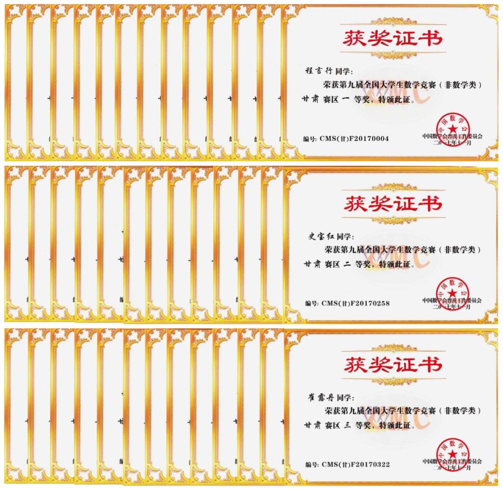 来自省内4所高校的5名同学代表甘肃省参加了本次总决赛。他们是2017年10月从甘肃赛区赛中选拔出来的优秀选手。在甘肃赛区赛中,我校共有646名同学报名参赛,获得各级奖项173项,其中获省级一等奖的44人,获省级二等奖的42人,获省级三等奖的87人。程言行、胡可昊两位同学分别以全省非数学类第二名和第四名的好成绩晋级本次全国总决赛。