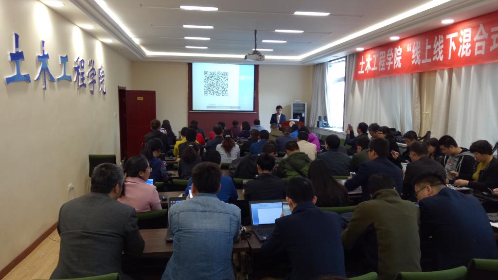 4月15日, 我校2018年度师资培训专项计划之一的“线上线下混合式教学方法”培训班在土木工程学院举办,清华大学在线教育办公室课程总监、首批国家级在线课程负责人王帅国博士担任主讲。