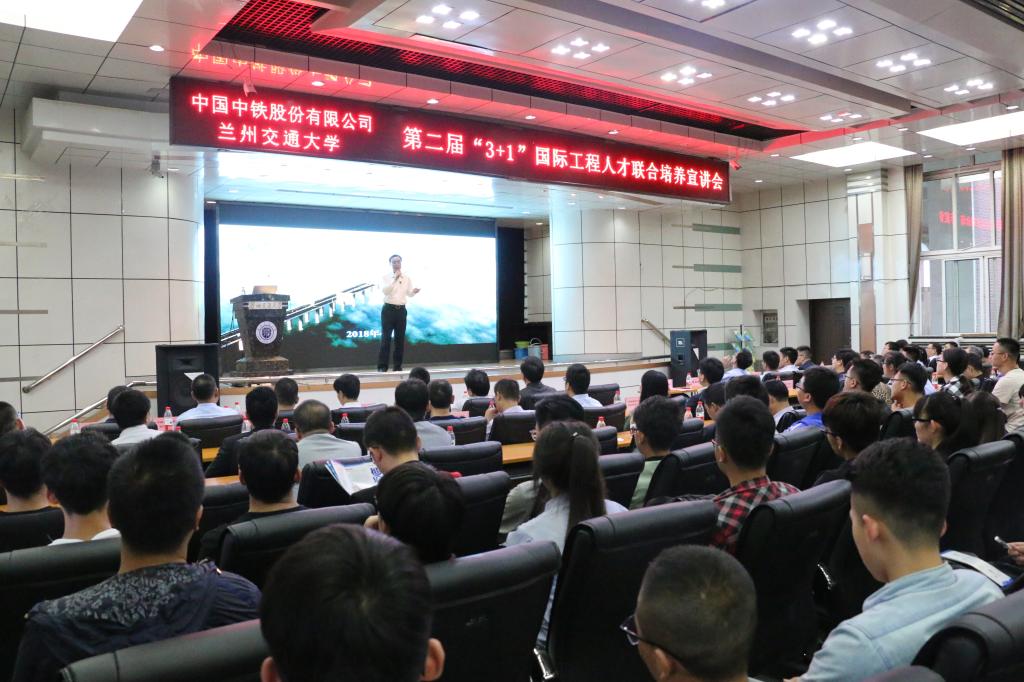 为切实推进实施国家“一带一路”倡议和“中国高铁走出去”战略,进一步加强创新型、国际化人才的培养,5月7日,中国中铁股份有限公司—兰州交通大学第二届“3+1”国际化工程人才订单式联合培养宣讲会在学校第五教学楼萃英厅举行。中国中铁股份有限公司旗下21家企业招聘代表、300多名学生及相关学院主管就业工作负责人参加了宣讲会。