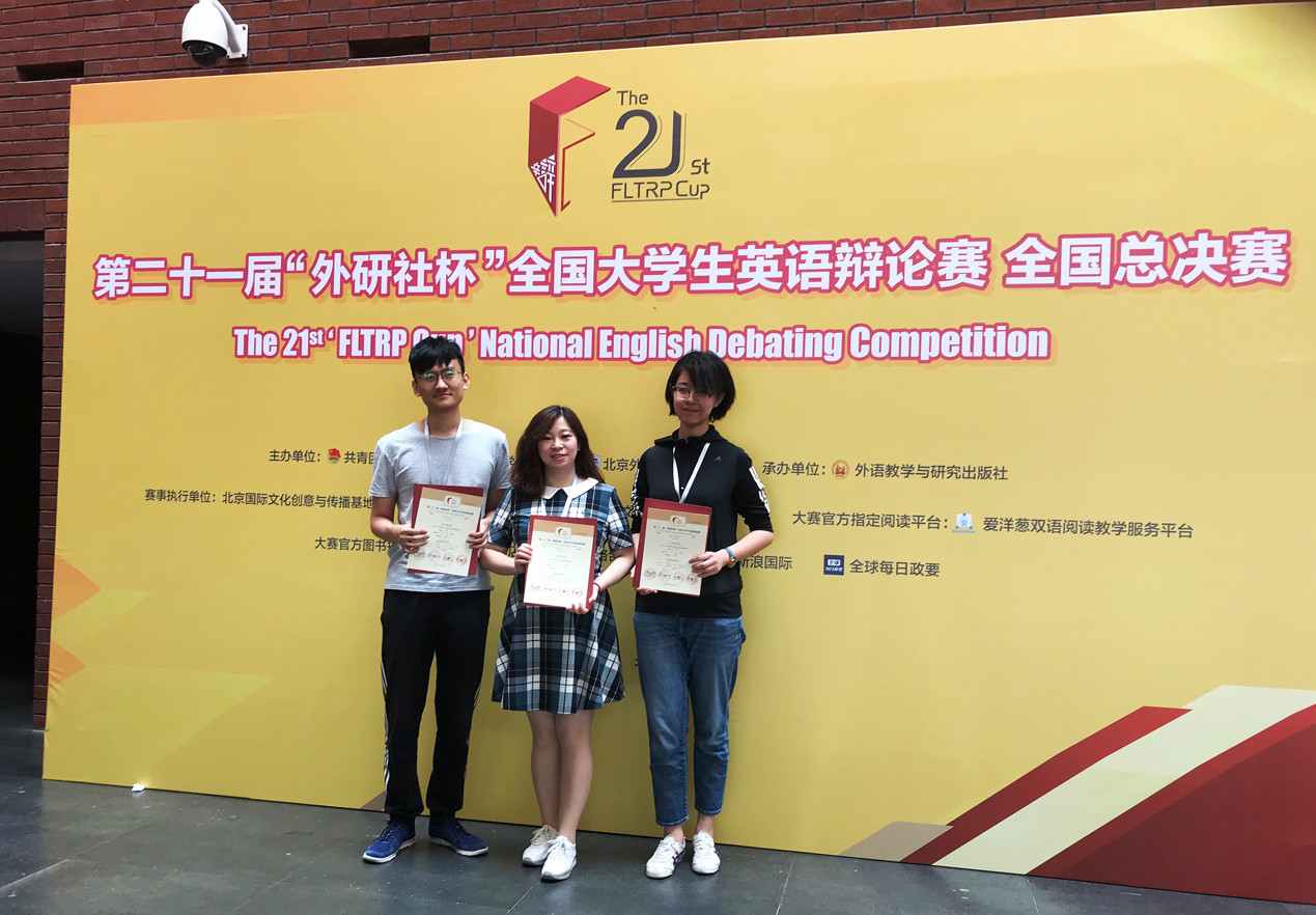 本届比赛竞争激烈,在决赛中我校代表队丁昊和郭嘉雯迎难而上,与多所著名高校的辩手面对面竞逐,他们沉稳发挥、沉着应战,凭借清晰的逻辑思维、流利的语言表达、快速的临场反应和深厚的学识积累稳步提升名次,最终以全国第23名的成绩排名位列多所“985”“211”重点本科综合院校以及语言类重点本科院校之前,充分展示了我校外语学科的办学实力和办学质量,也充分展示了我校高等教育事业改革发展的优秀成果。