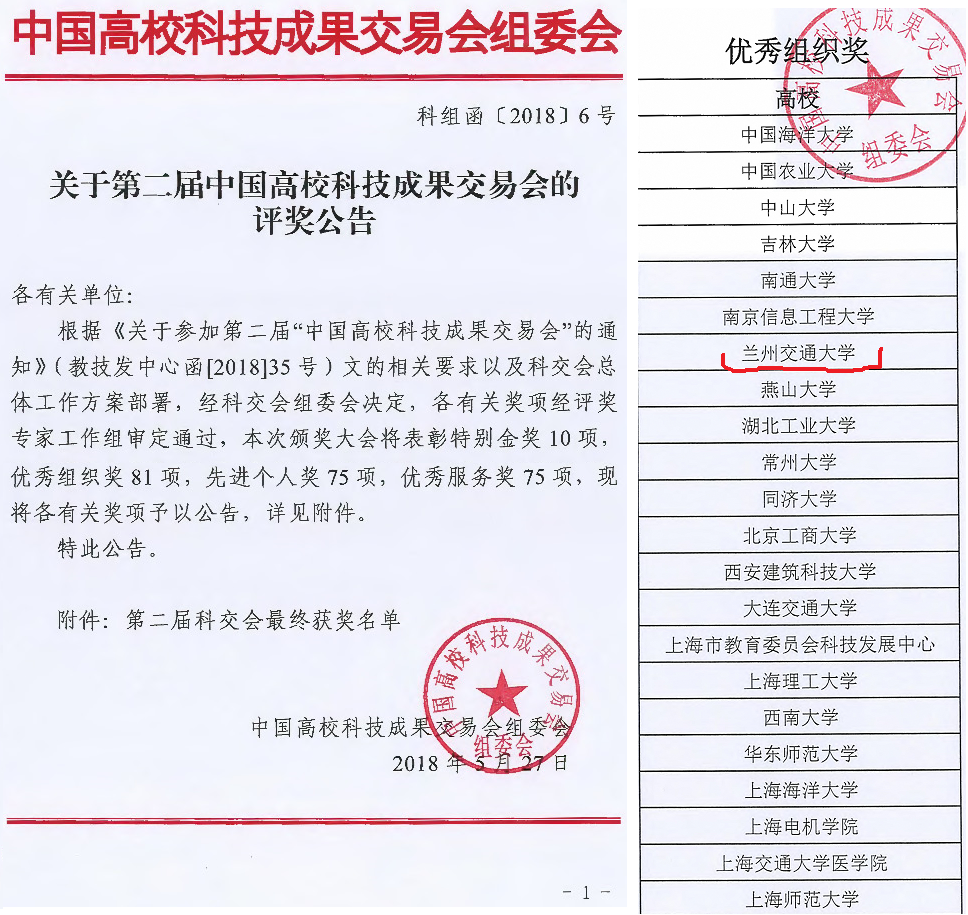 在本届科交会上,我校携全电子化计算机联锁系统、线性菲涅尔式熔盐高温高压光热发电示范项目、创新型植物源生物农药“世创植丰宁”等60多项科技成果参加了展示、洽谈,其中部分成果受到珠三角地区多家企业的青睐,并进入到交易洽谈阶段。展会期间,我校还接受了当地媒体的专访,通过专访进一步宣传了我校科研成果。同时,教育部科交会组委会充分肯定了我校在本次活动中的组织工作,并授予我校优秀组织奖。