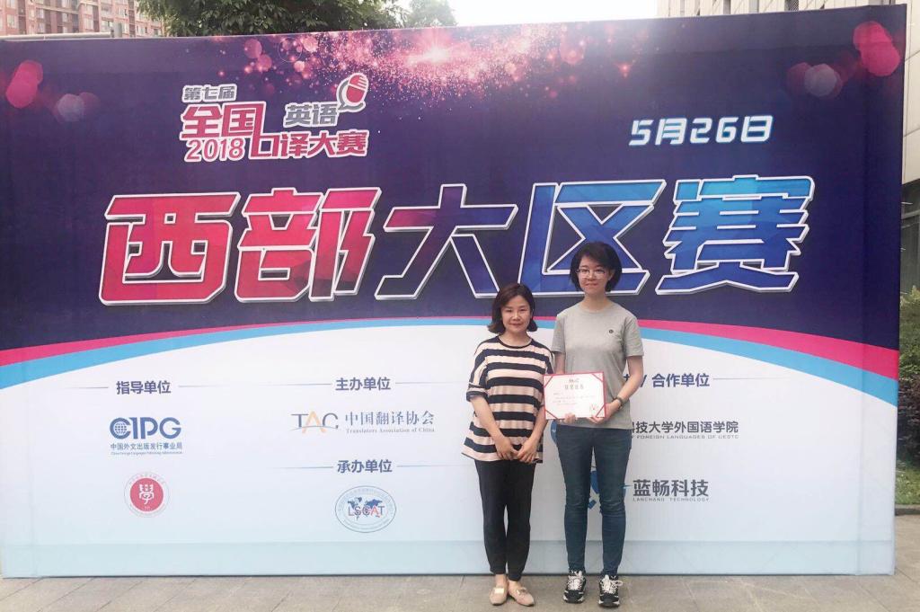 5月26日,第七届全国口译大赛(英语)西部赛区大区赛在位于四川成都的电子科技大学举行。由我校外语学院赵洁老师指导的郭嘉雯、赵鹏蕊代表西北赛区参加了本次西部大区赛。本次比赛分为淘汰赛和总决赛,经过第一轮分组淘汰赛的激烈角逐,20名选手进入下午的总决赛。最终,郭嘉雯凭借扎实的语言功底和口译能力获得优秀奖,赵洁老师获得“优秀指导教师奖”。