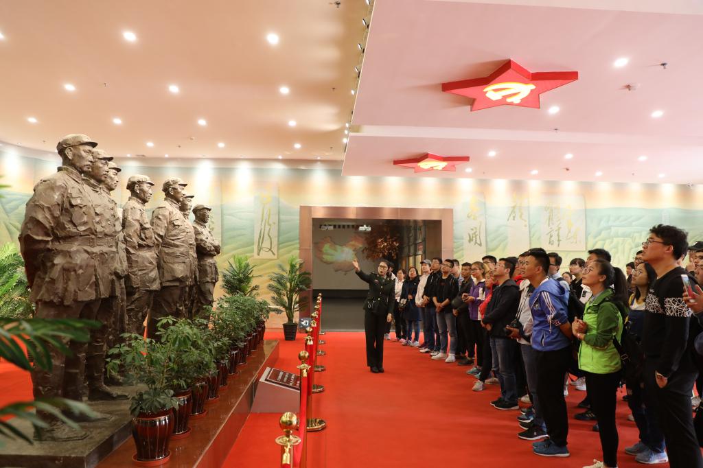 期间,全体学生党支部书记来到长征胜利景园,重走“长征路”。体验教学过程中,大家参观了模拟建设的瑞金塔、遵义会址、强渡嘉陵江、延安宝塔、红军会师广场等长征场景,认真听取了讲解员对当时历史事件的讲解。