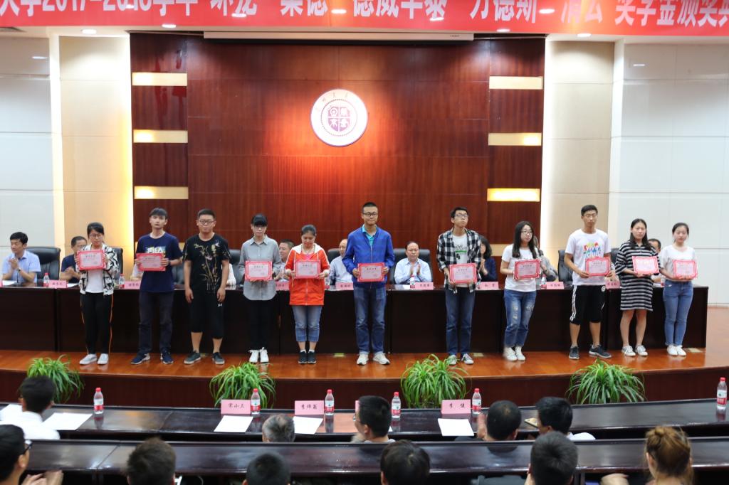 6月6日下午,2017-2018学年“环龙、桑德、德威华泰、万德斯、清云”奖学金颁奖典礼在我校国际会展中心举办。