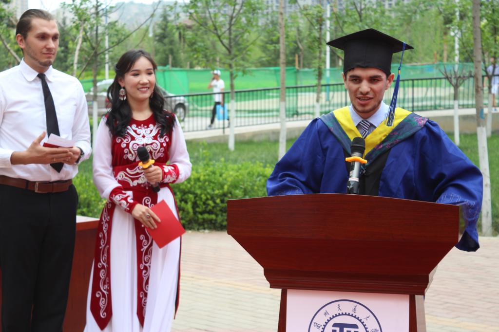 毕业生代表司马赋(塔吉克斯坦籍)、汉语言结业生代表康晨(尼日利亚籍)回顾了自己在华学习的难忘经历和所学所获,表示会牢记学校的恩情和嘱托,创造出属于自己和中国的美好未来。