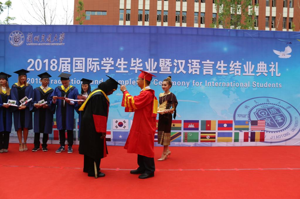 6月26日下午,伴随着《难舍难分》的浓情曲调,我校2018届国际学生毕业暨汉语言生结业典礼在国际教育学院门前广场举行,副校长陈兴冲,校团委、教务处、国际教育学院相关负责人,全体国际学生毕业生及汉语言结业生参加毕业典礼。