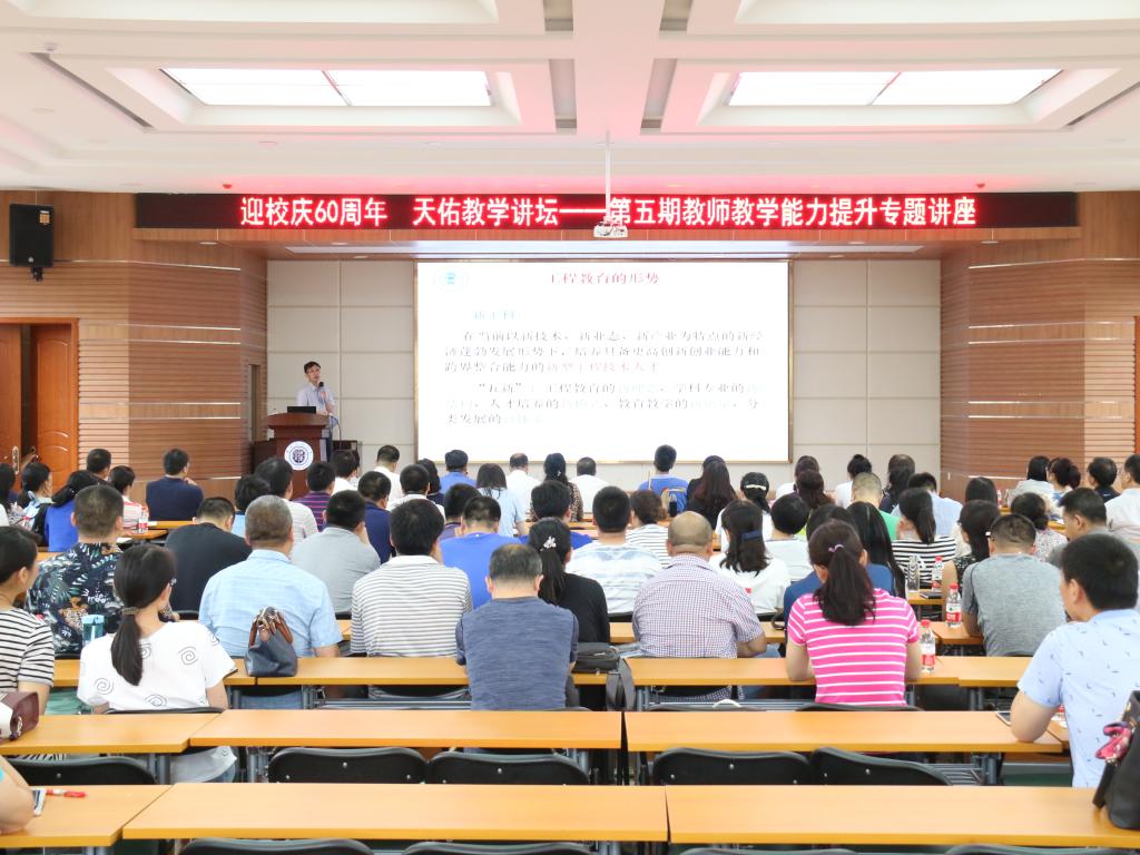 7月5日下午,学校在二教报告厅举办了“迎校庆60周年,天佑教学讲坛” 第五期教师教学能力提升专题报告会。本期讲座特邀国家级教学名师、北京交通大学陈后金教授作了题为“新时代背景下的国家级MOOC课程建设”和“电子信息类专业实验教学探索与实践”的专题报告。自动化学院、电信学院、电工电子实验教学中心、计算机科学与技术实验教学中心全体教师以及其他教学单位主管教学副院长(副主任)、系主任和青年教师代表约300余人参加了报告会。报告会由教务处处长张友鹏教授主持。