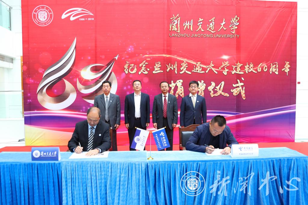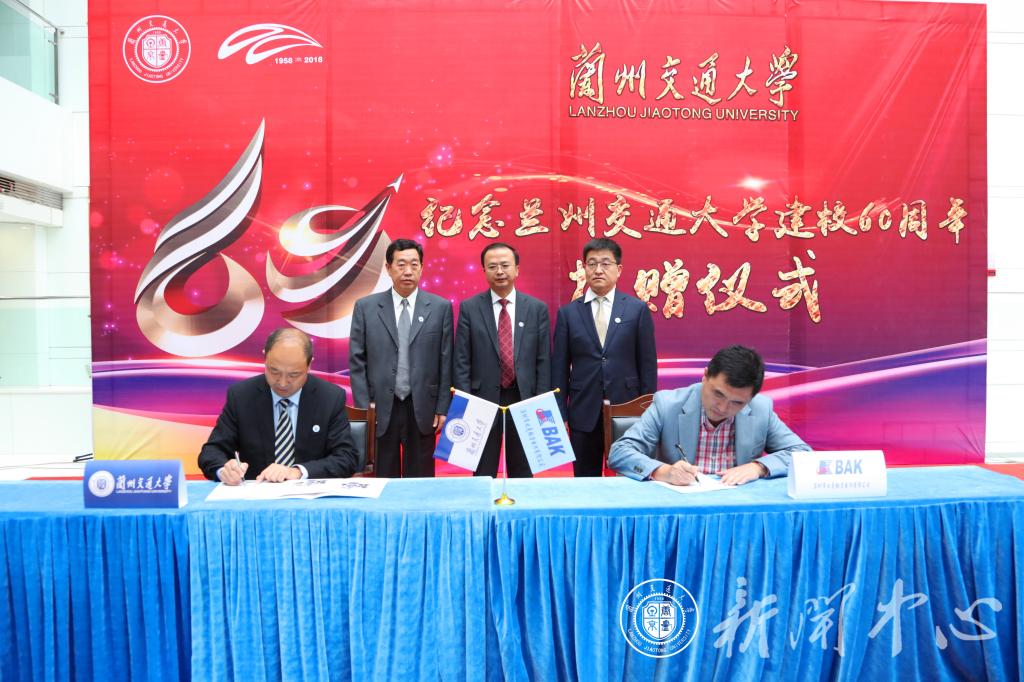 中铁二十一局集团有限公司、中铁第一勘察设计院集团有限公司、深圳市比克动力电池有限公司、中国电信甘肃公司、中天科技集团有限公司、兰州交大工程咨询有限责任公司、兰州交大设计研究院有限公司、兰州交通大学工程检测有限公司同兰州交通大学签署捐赠协议。我校副校长刘振奎,副校长、教育发展基金会理事长张国珍出席捐赠仪式。
