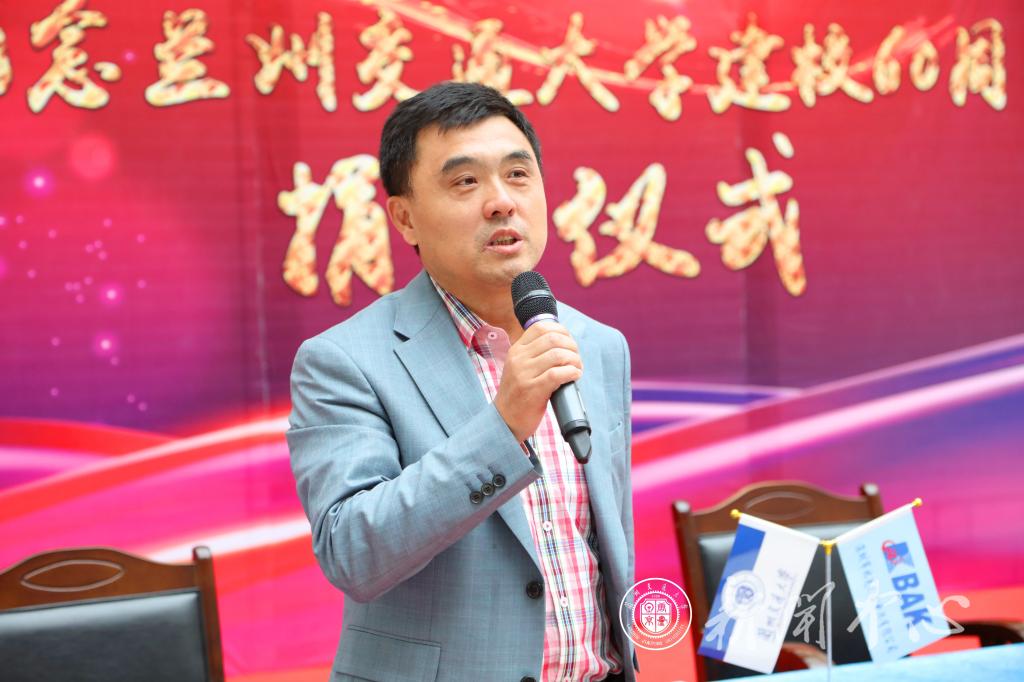 刘振奎副校长在致辞中表示,兰州交通大学能取得今天的成绩,是与各协作单位及海内外校友的鼎力相助分不开的。学校事业的每一步发展、每一个目标的实现、每一份成绩的取得都凝聚着各协作单位及校友们的贡献。今天,各企业和校友又为我校建校60周年慷慨捐赠,送上一份深情的生日祝福,更进一步体现了其关心教育、回报社会的企业担当和社会责任,体现了校友们心系母校发展的拳拳赤子之心。希望校企双方在不断深化友谊,加强合作的基础上,进一步丰富合作载体,加强优势互补,拓宽合作领域,努力实现校企深度融合,共同发展,持续共赢;希望各位校友回校期间,在共叙师生之情、同窗之谊的同时,多为学校将来的发展献计、献策、献力,并一如既往地关心、支持学校的建设和发展。