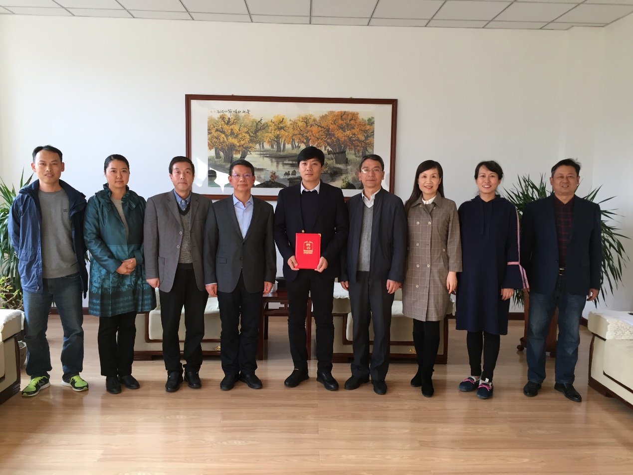 陈兴冲副校长为杨必胜教授颁发聘书,并签订了协议。