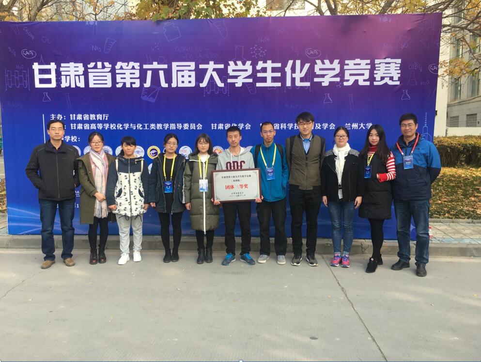 11月9日至11日,甘肃省第六届大学生化学竞赛(本科组)在兰州大学举行。甘肃省内的14所本科院校的14支参赛队参加了决赛。我校化学与生物工程学院10位同学组成的竞赛队伍参加比赛。