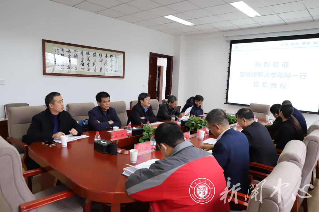11月16日上午,安徽建筑大学党委书记、校长方潜生等一行5人来访我校。校党委书记杨子江会见了来宾,并在7号实验教学楼324会议室召开了工作交流座谈会。座谈会由副校长党建武主持。
