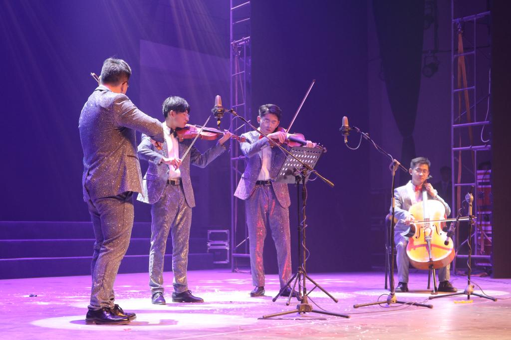 少年强则国强,少年智则国智。朗诵《少年中国说》,以梦为马,不负韶华,扬帆启航,终抵远方。舞蹈《踩堂欢歌》为我们展示了苗族的异域风情,用欢快的步伐彰显着青春的活力。大提琴小提琴演奏《天空之城》让人领略了西方弦乐的美轮美奂。笛子古筝合奏《战台风》体现了中国传统乐器的深厚底蕴,中西乐器的碰撞让在场的观众体味到了中华文化之精髓和西方乐器之魅力。魔术表演《魔术至尊》深深吸引在场的每一个人,观众们感受着魔术带来的神秘色彩。搏击表演《尚武雄风》一招一式,一脚一拳,一次又一次的震撼全场,掌声雷动。晚会接近尾声时,歌伴舞《再一次出发》为迎新之夜画上了圆满的句点。