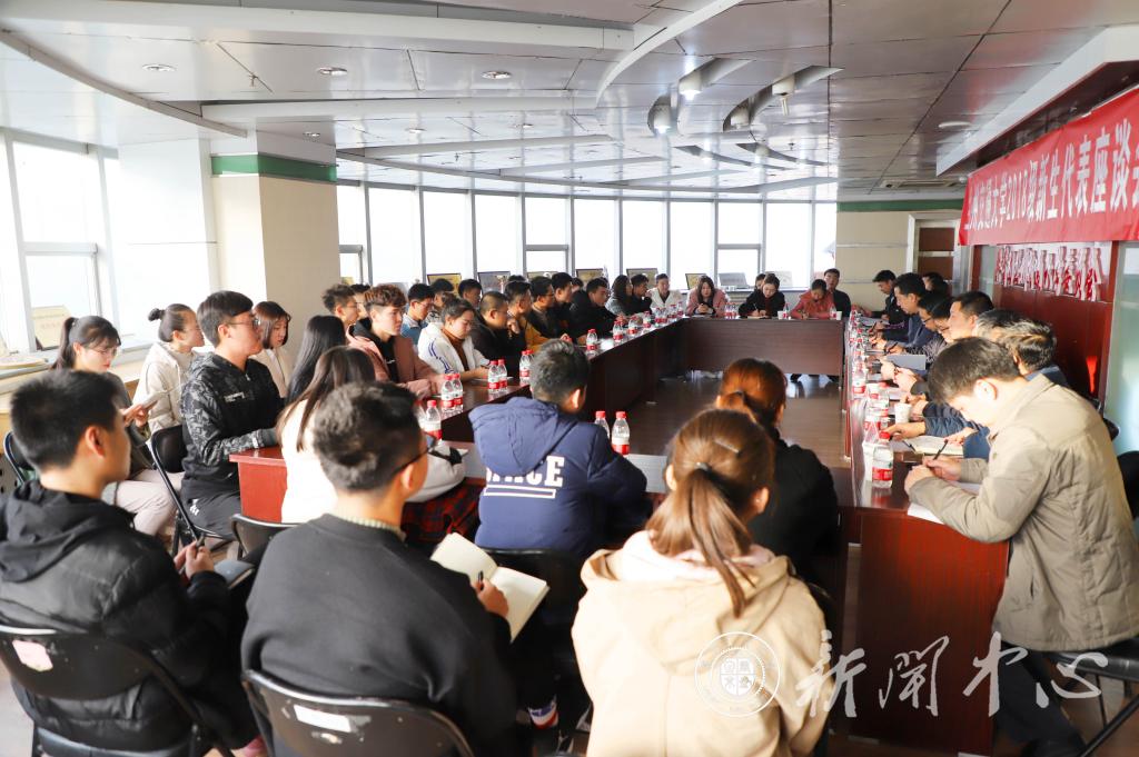 党委宣传部、教务处、学生处、招生就业处、保卫处、后勤管理处、后勤集团、信息中心、图书馆、校团委等相关职能部门主要负责人以及我校2018级34名新生代表参加了本次座谈。