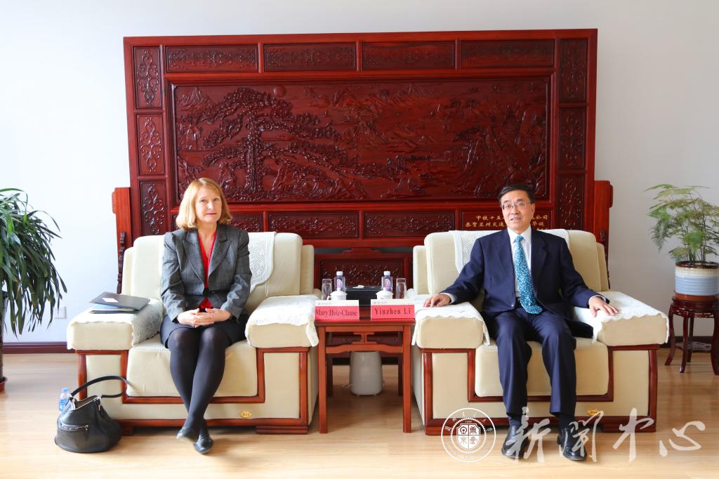 11月27日下午,美国明尼苏达大学克鲁克斯顿分校校长Mary Holz-Clause一行4人来访我校,校长李引珍会见了来访团一行,双方就教师培训和联合办学方面的合作达成了广泛共识。