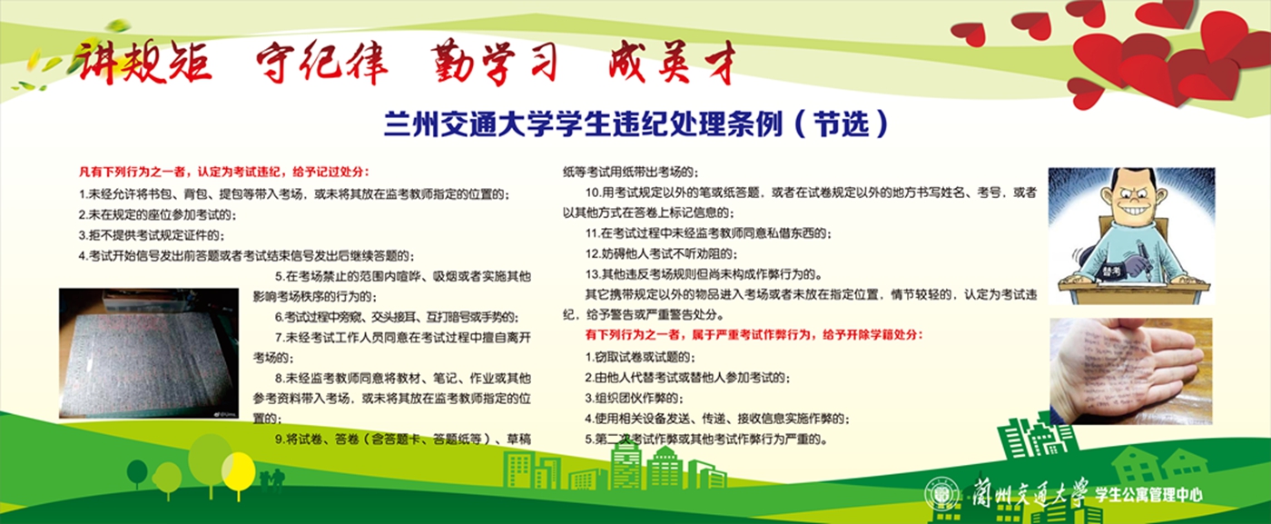 活动紧紧围绕与学生切身相关的党的政治纪律、宗教纪律、学校考试纪律、学生日常管理纪律及学位授予条件和评奖助学资格等主题,活动成果已在学生公寓区宣传栏集中展出。
