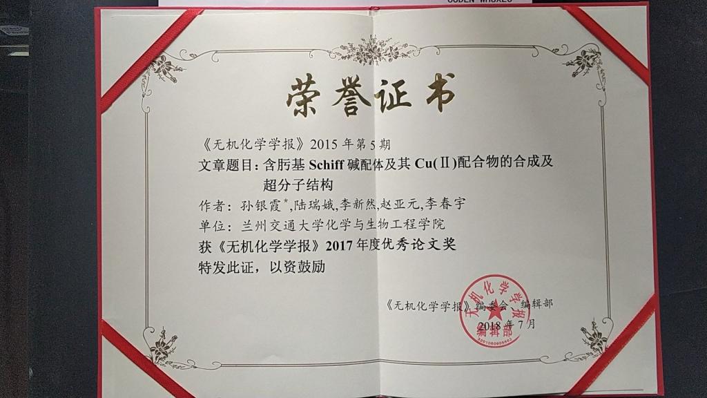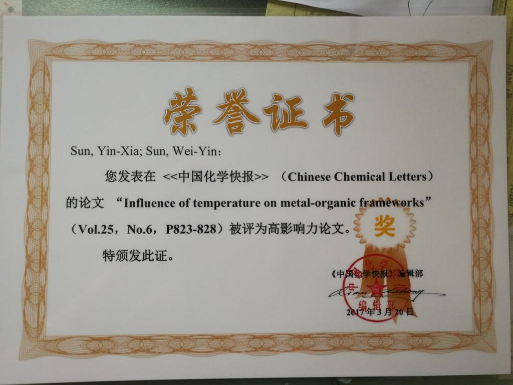 继“化学”学科进入ESI全球排名前1%后,近日我校化学与生物工程学院又传捷报,该院董文魁教授和孙银霞教授为通讯作者的共5篇SCI论文分别被《无机化学学报》和《中国化学快报》评为“优秀论文”和“高影响力论文”。