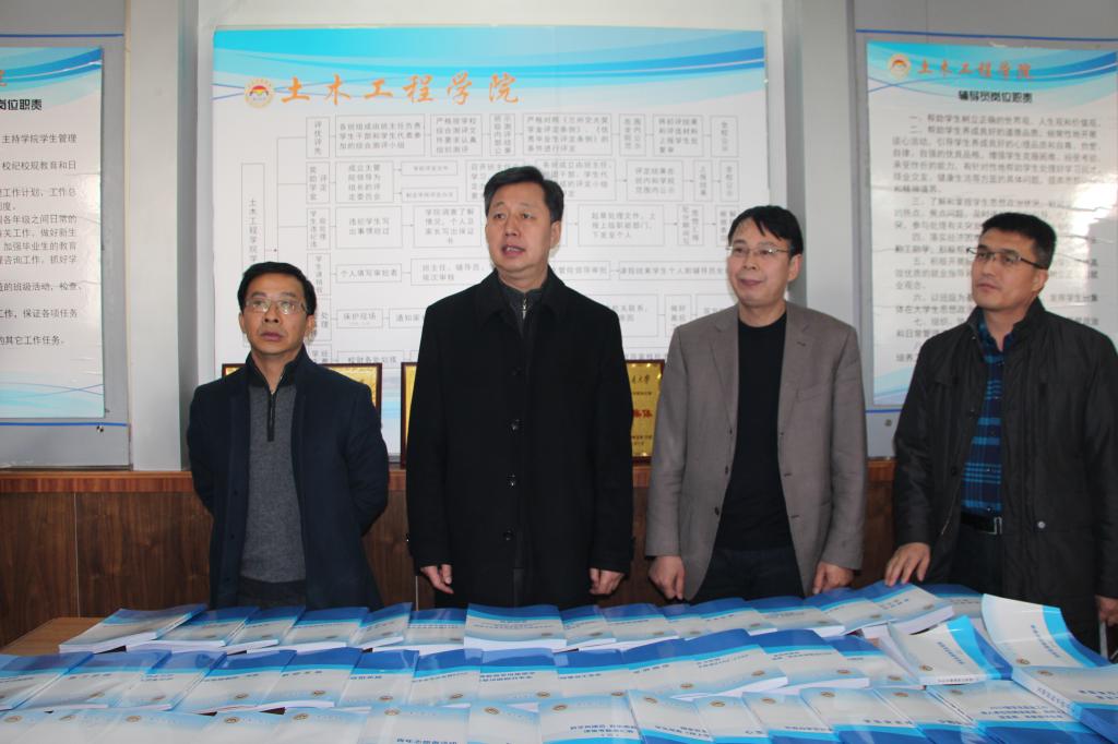 12月4日,学校学生工作考核领导小组在副校长马军党的带领下,深入环境学院、建筑学院、土木学院、测绘学院和电信学院等五个学院,听取各学院学生工作负责同志的工作汇报,并查阅了相关文档材料。