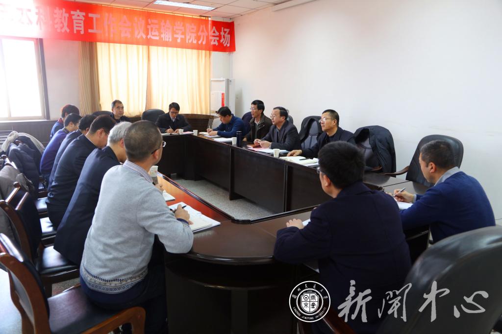 12月18日下午,交通运输学院、新能源学院2018年本科教育工作学习研讨会在交通运输学院702会议室举行。副校长刘振奎主持会议,教务处、国家级计算机实验教学示范中心、实验室管理处、创新创业学院等职能部门的主要负责人、交通运输学院和新能源学院的领导和教师代表共50余人参加了会议。