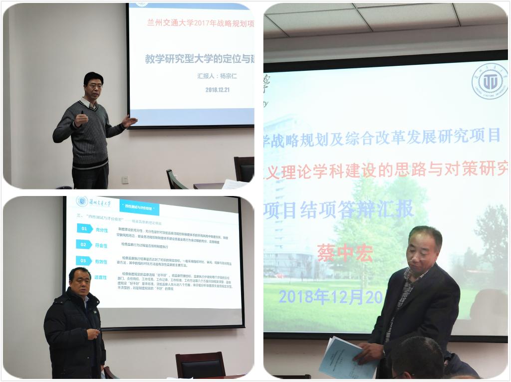 12月21日,学校战略规划及综合改革发展研究项目结题答辩评审会在七号实验楼202会议室举行,对2017年申请立项的项目进行结题答辩评审。评审会邀请了学校督导廉李章教授、自动化学院院长陈小强教授、交通运输学院马昌喜教授、发展规划处副处长柳德玉副教授、科技处科研成果管理科科长杜三山副教授等五位老师作为评审专家。