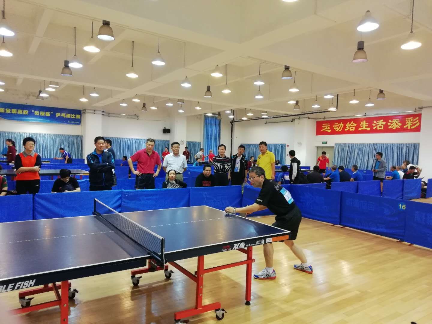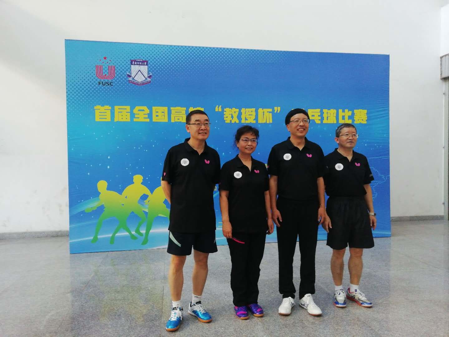 比赛设置男子单打、女子单打、男子双打和女子双打,来自全国81所高校的442名运动员参赛。我校4名教授组队,参加了男子单打、女子单打和男子双打3项比赛,取得了男子双打第5名和女子单打第5名的好成绩。