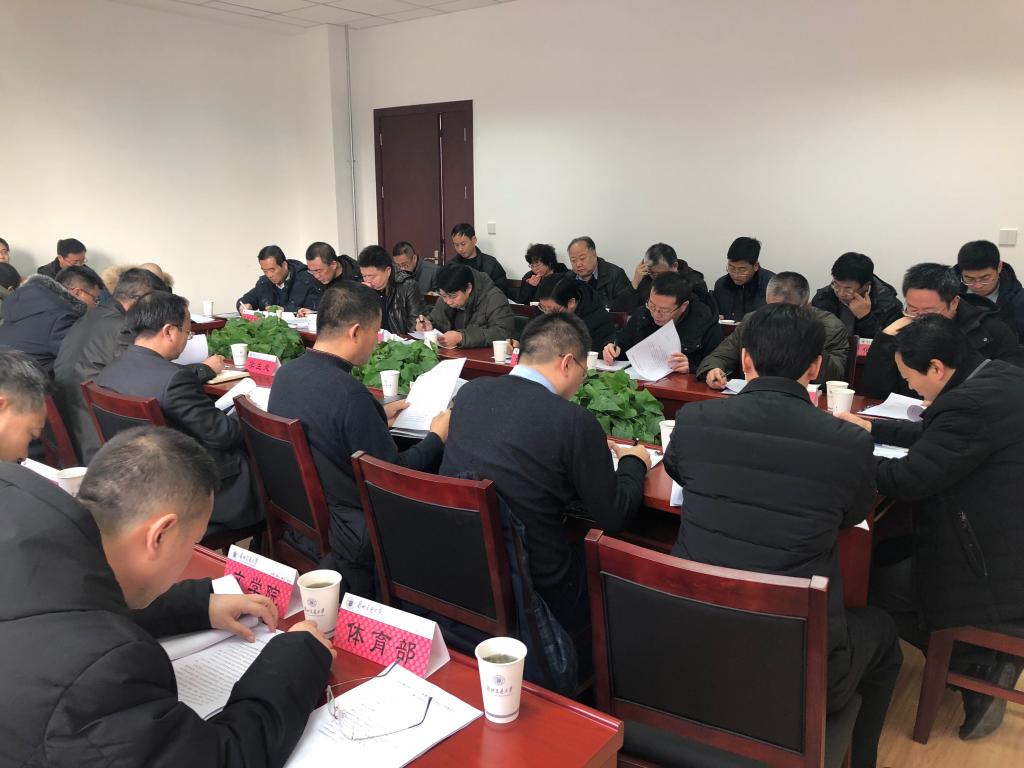 教务处、学生处、招就处、校团委主要负责人,2019年参加认证专业的教学单位院长、主管教学副院长、专业负责人,以及外语学院、体育部、化工学院、机电学院、文学院、马克思学院、测地学院、数理学院、经管学院、材料学院等教学单位的院长、主管教学副院长参加了会议。