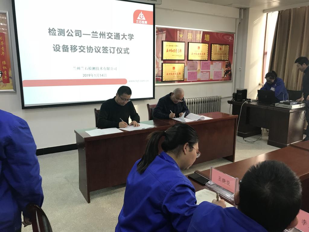 交流座谈结束后,彭珍瑞和兰石检测技术有限公司总经理雷万庆共同出席了60T万能材料试验机的交接仪式,并签署了合作文件。双方一致认为,推动失效分析中心的可持续发展是今后工作的重心。以“失效分析中心”为平台,多出成果,在失效分析领域再创佳绩,同时积极拓展合作领域,扩大合作范围,为双方今后在轨道交通检测领域、役压力容器检验方面有所作为,奠定坚实的基础。