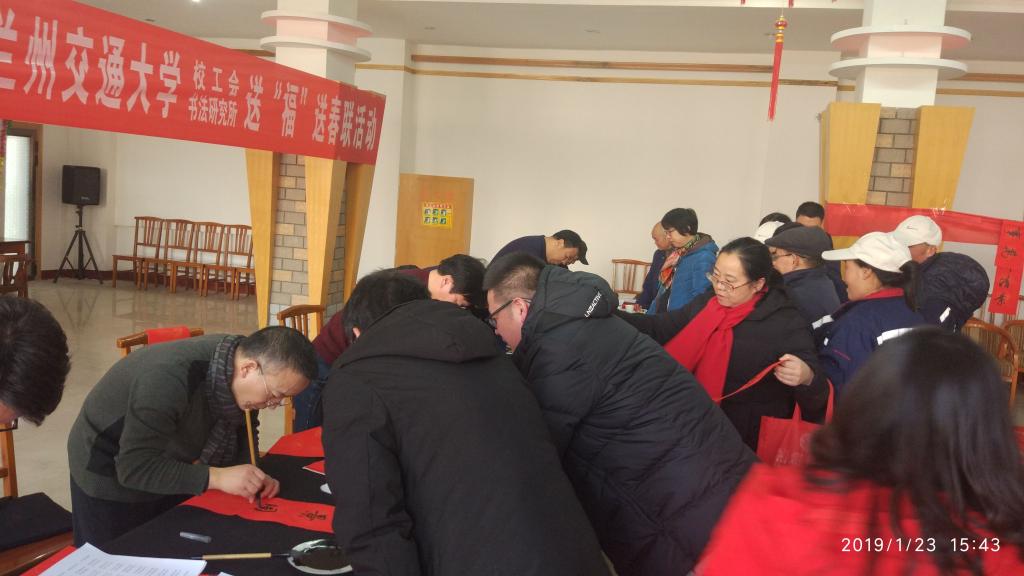 千门万户曈曈日,总把新桃换旧符。为弘扬中华传统文化,营造欢乐祥和的节日氛围,在农历己亥年新春佳节即将来临之际,1月23日,校工会联合我校中国书法文化研究所,在校工会三楼活动室开展了“同心同书·祖国新春好”书法文化惠民公益活动。