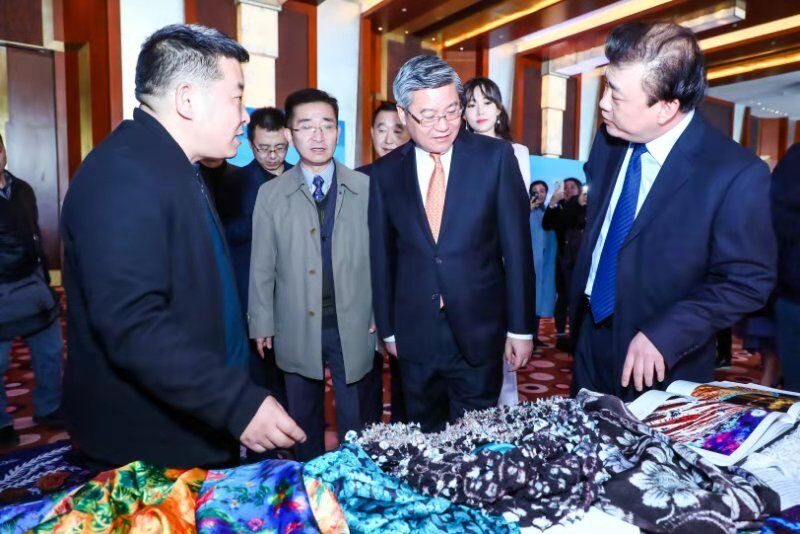 在28日的活动中,甘肃省委常委、兰州市委书记李荣灿同志专门视察了“丝绸之路染缬艺术”展位,并与管兰生教授进行了简短而务实的交流,高度评价了兰州交通大学在协助地方经济文化建设中所起的突出作用,肯定了管兰生团队多年来坚持挖掘保护、传承创新中国传统优秀文化的艰苦努力。
