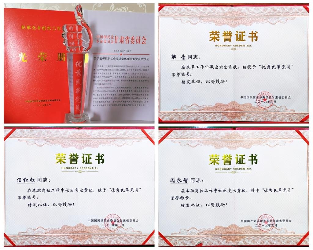 我校民革支部荣获 “组织工作先进集体”光荣称号,民革支部主委金梅的提案“渭源县文化旅游产业调研报告”获优秀参政议政成果二等奖,副主委解青、支委任红红和党员闵永智分别荣获民革工作和立足本职岗位“优秀党员”称号。