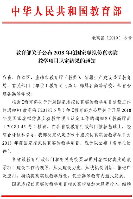 4月9日,由教育部主办的“中国慕课大会”在北京召开,会上公布了2018年度国家虚拟仿真实验教学项目获批结果,教育部副部长钟登华为项目负责人代表颁发了证书。