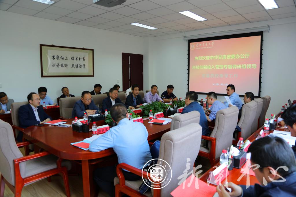 5月15日,甘肃省委办公厅调研处副处长陈钟、省科技厅科资源配置与管理处副处长康鹏、省教育厅科学技术处调研员栗波等一行莅临我校,围绕科技创新投入管理情况进行专题调研。调研会在学校实验7号楼224会议室举行,党建武副校长出席,学校相关职能处室负责人和部分单位教师代表共20余人参加会议。