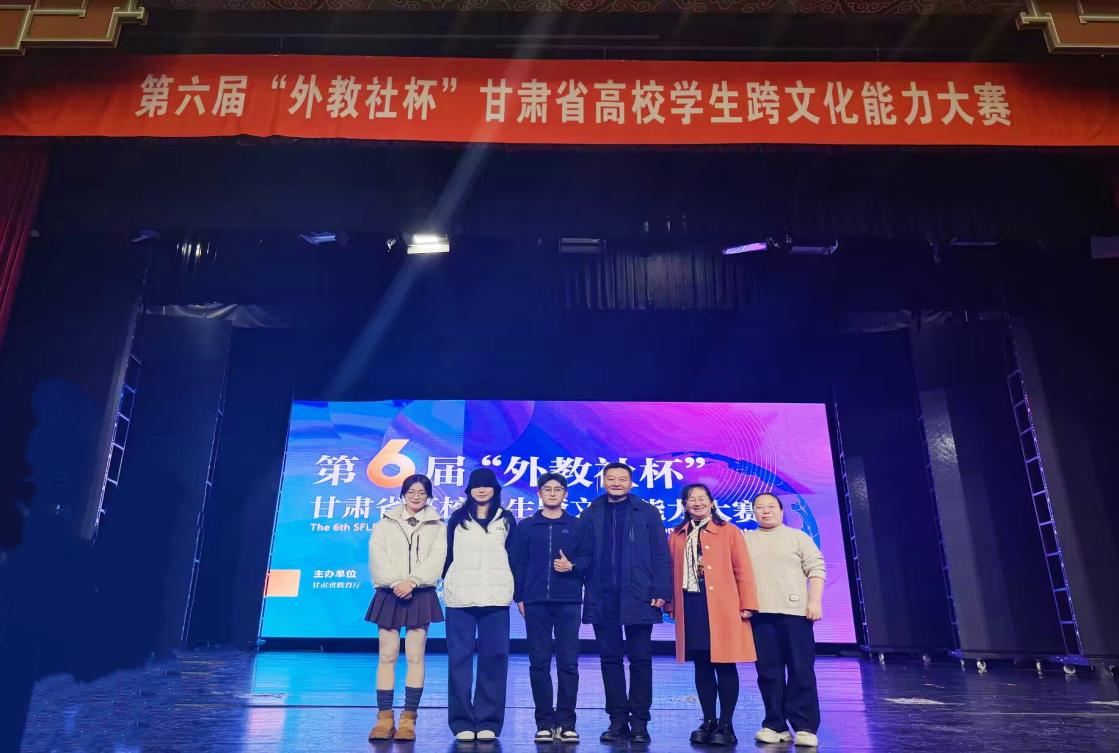 10月25日,由甘肃省教育厅主办,上海外语教育出版社协办的第六届“外教社杯”甘肃省高校学生跨文化能力大赛在西北民族大学举办,来自兰州大学、西北师范大学、西北民族大学、兰州理工大学等22支队伍参加了此次比赛。由我校学子杨乐(外国语学院)、许志佳(外国语学院)、秦璐洋(机电学院)组成的参赛团队在外国语学院教师胡淑兰、楚蕊玲的悉心指导下,荣获一等奖。