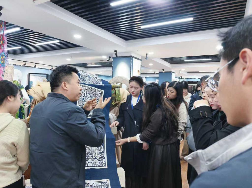 10月23日,西北师范大学继续教育学院“国培计划(2005)——天水市县级农村小学美术骨干教师培训”的50名学员来到我校染缬艺术博物馆参观交流,并开展传统蓝染非遗体验活动。此次活动通过“参观+体验+研讨”的模式,不仅让参训教师直观感受了传统染缬艺术的独特魅力,更搭建了传统非遗工艺与美术教学融合的桥梁,为后续农村小学美育教育教学质量的提升与传统文化的校园传承奠定了坚实基础。进一步提升甘肃省地方市县级农村小学美术教师对传统非遗工艺的认知与教学转化能力,让参训教师沉浸式感受传统非遗染缬艺术魅力的同时,为后续地方中小学美育教育教学开拓新思路。