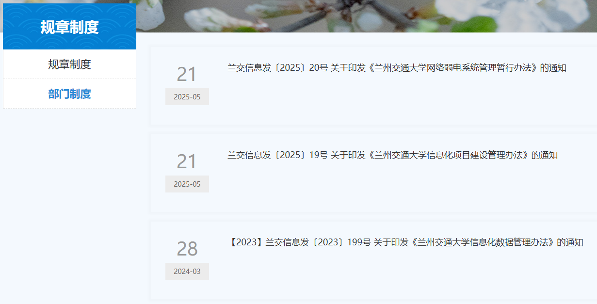 网络信息中心以“废改立”为原则梳理制度体系,既完成29项智慧校园公共服务能力清单发布,更形成《兰州交通大学网络信息中心制度办法清单》,出台《信息化数据管理办法》《信息化项目建设管理办法》等3项核心制度,从源头统一数据标准、规范项目流程。依托制度支撑,校园大数据中心顺利建成,为后续服务升级夯实数据基础。针对师生问卷中“数据不互通、服务无标准”的反馈,中心通过制度刚性约束打破数据壁垒,让“有章可循、有规可依”成为服务常态,制度体系完善度提升80%,师生对“服务规范性”满意度提升显著。